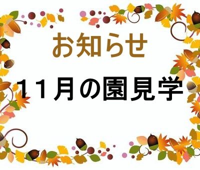 11月の園見学 2025.11.12 未分類 ◆わかたけの森こども園の見学ご希望の方へ◆ 以下の日程で見学開催します。お電話またはホームページ上、お問い合わせフォームの 「お問い合わせ内容詳細」に①希望日程を必ずご記入の上、お申込み下さい。 ①11月27日(木)10:30~11:00 ②11月28日(金)10:30~11:00 お願い:5分前からの入室でお願いします。お車でお越しの際はお知らせ下さい。 ♪お子さん、ご夫婦で一緒に見学は可能です。 投稿者: わかたけの森こども園 未分類 10月の園見学のお知らせ前の記事